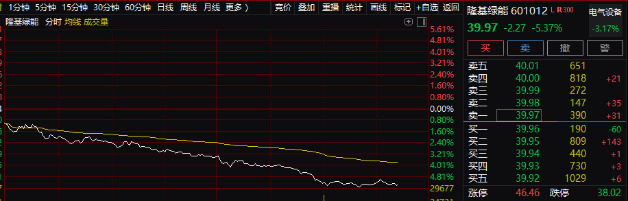 这一个消息在市场上传播开来之后,整个光伏板块开始大举杀跌,隆基绿能午后跌幅扩大至5%以上,全天呈单边杀跌态势。
