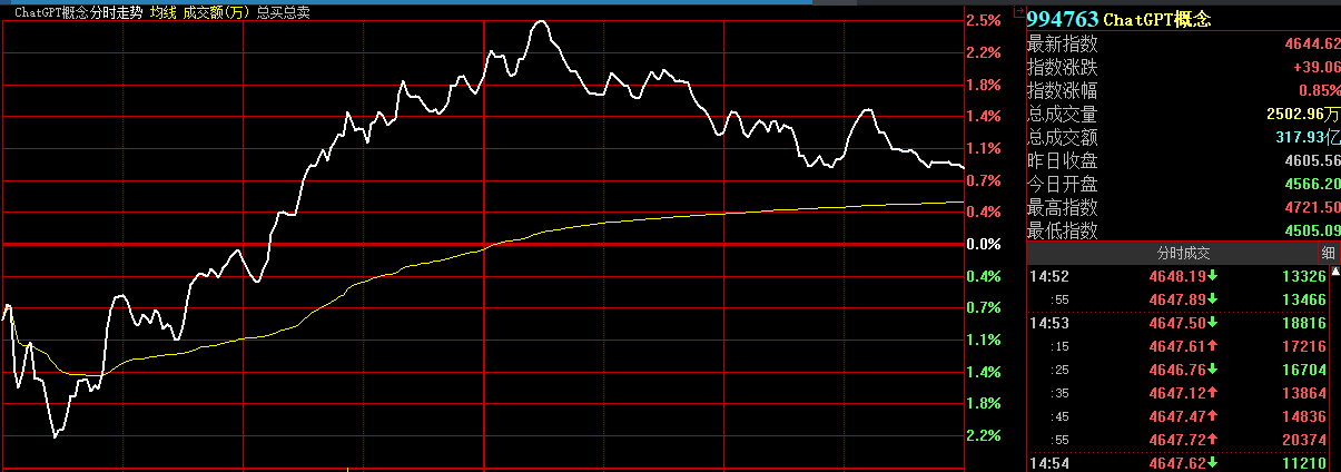 第二,今天A股ChatGPT概念股走势,出现了明显的冲高回落,资金趁机兑现利润的可能性较大。