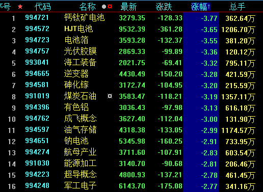 就板块而言,与新能源相关的领域集体下跌,比如钙钛矿电池,光伏电池、逆变器、钠电池等等。