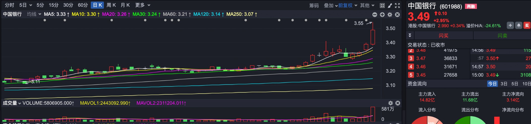 另外,值得注意的是,尽管今天中字头板块陷入调整,但银行股却异军突起,显然成为当前中字头最后的价值洼地。