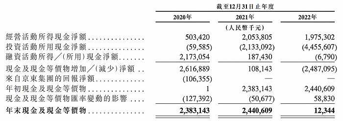 受上述收入项的影响,2020至2022年三年间京东产发的年度盈利分别为28.13亿元、14.94亿元、22.2亿元。三年间京东产发也录得正向经营活动现金流,经营活动所得现金净额分别为5.79亿元、7.13亿元、17.31亿元。