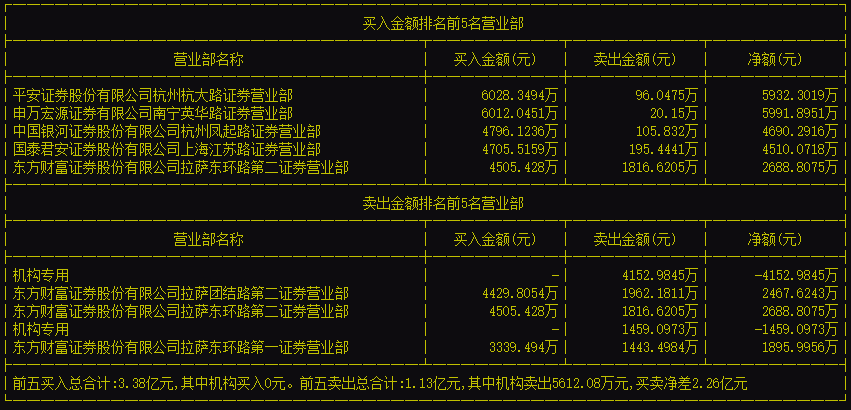 具体来看,陕西能源的买入前5营业部均为东方财富证券旗下的营业部,合计买入4.85亿元,合计卖出9454万元,净买入额为3.91亿元。