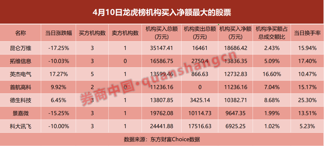 不过,从当日龙虎榜数据来看,包括昆仑万维、拓维信息、科大讯飞、景嘉微等TMT个股仍被机构大额买入。其中,昆仑万维当日的机构净买额最高,达到1.87亿元,其中三机构合计买入3.51亿元,一机构买入1.65亿元。