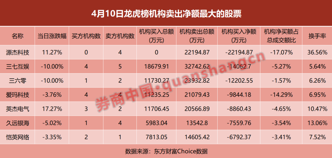 也有一些传媒板块的股票开始呈现机构净卖出,包括三七互娱、三六零、恺英网络等等。