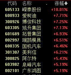 汽车整车板块大涨。安凯客车、江铃汽车、金龙汽车等多股涨停。