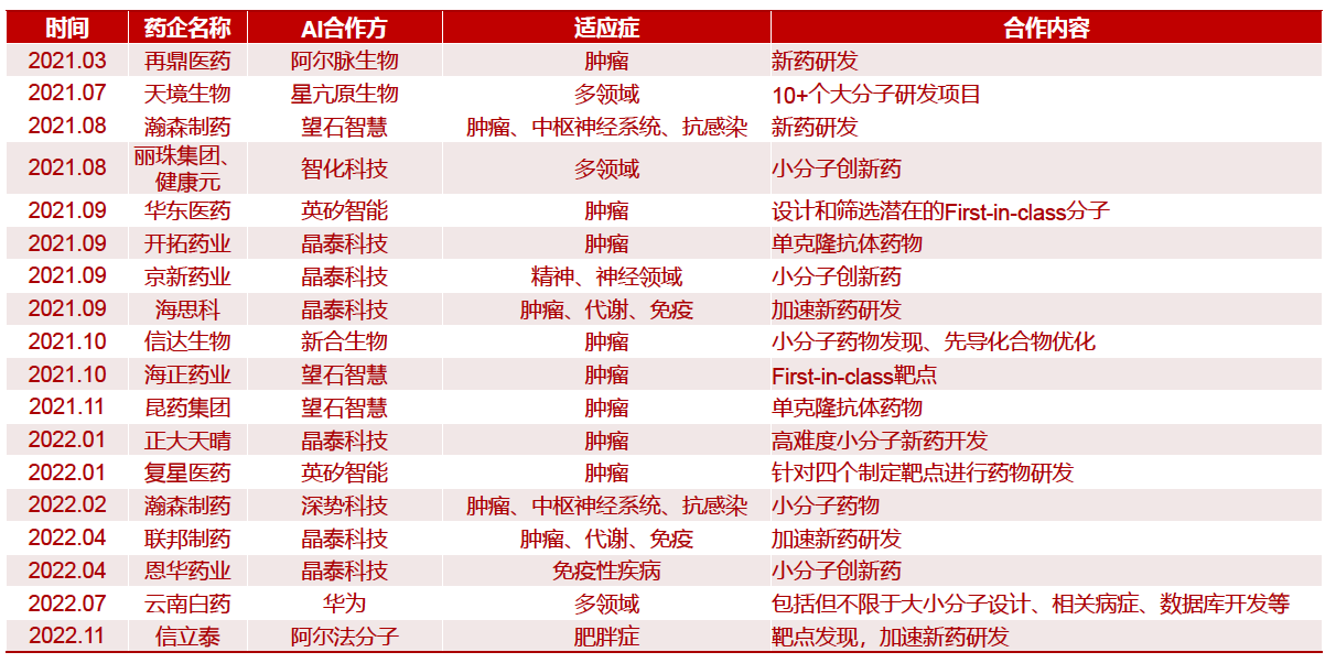 图|国内2021-2022年药企+AI合作一览,资料来源:智药局,浙商证券研究所