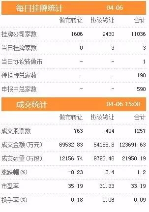 今日新增挂牌企业3家,截至2017年4月6日,挂牌企业总数达到11036家。
