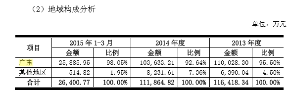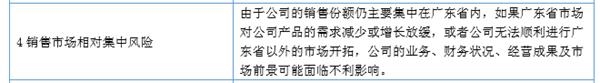 长期以来,广东地区营收占比均高达90%以上。因此,销售市场相对集中,也常被年报列为风险因素之一。