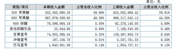 从产品营收占比来看,苹果醋仍占营收首位,但新产品营收比重并没有显著提高,甚至下降。以百草壹号为例,营收下降之外,占总营收比例也从8.84%下降至5.32%。