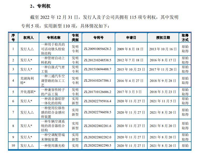 此外,截至2022年12月31日,上海汽配及子公司还拥有非专利技术11项,均为自主研发取得,取得时间为2013年~2020年;其中8项非专利技术在报告期内生产经营活动中经常使用,应用于汽车空调管路的研发、生产,对公司生产经营活动有重要作用。