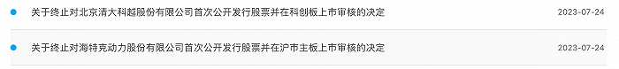 在上周,海特克动力股份有限公司和北京清大科越股份有限公司均默默撤回了自己的首发申请,前者是沪市主板,后者为科创板。