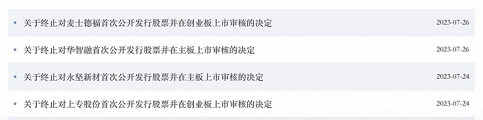 同样,在上周深交所也有IPO公司选择默默撤回自己的首发申请,分别有上专股份(创)、永坚新材(主)、华智融(主)、麦士德福(创)。