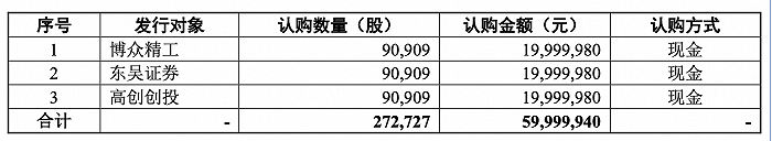 2022年9月,卓兆点胶向博众精工、东吴证券及高创创投定向发行共计272,727股,发行价格220元/股。IPO前,博众精工持有公司590,909股股份,占公司总股本的0.8471%。