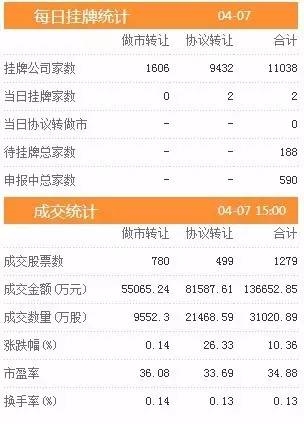 今日新增挂牌企业2家,截至2017年4月7日,挂牌企业总数达到11038家。