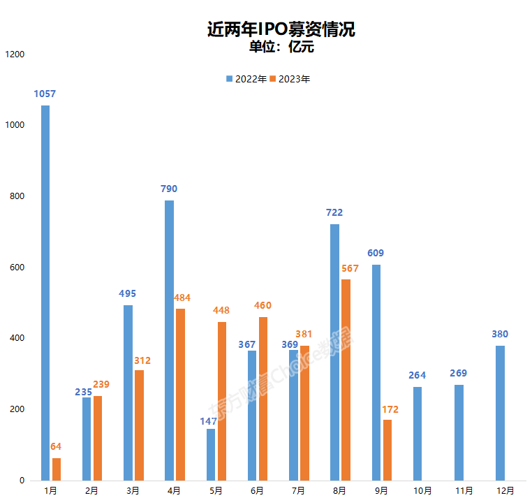 自8月底,监管层明确表示将“根据近期市场情况,阶段性收紧IPO节奏,促进投融资两端的动态平衡”后,9月的融资端收紧形式更为突出,当月IPO首发募资额更是同比下滑超过70%。
