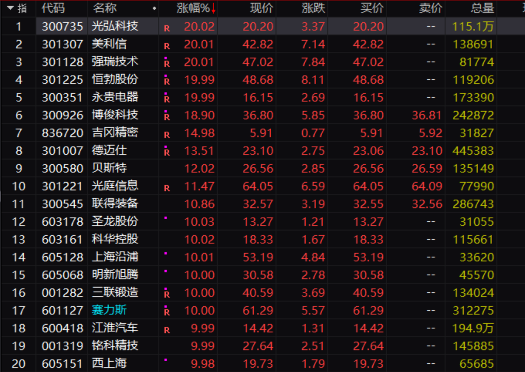 今天市场的另一个看点是华为产业链集体爆发,特别是华为汽车。整个板块迎来了涨停潮。