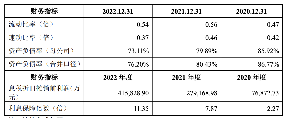 值得注意的是,2020年至2022年,福华化学流动比率分别为0.47、0.56及0.54,速动比率分别为0.42、0.46及0.37。由于大部分债务为短期债务,且流动比率、速动比率较低,福华化学存在较大的短期偿债压力。
