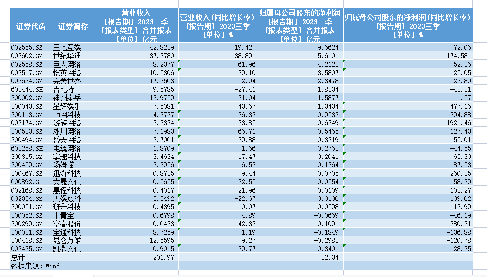 25家游戏公司三季度赚32亿元:三七互娱最吸金 游族网络增速第一