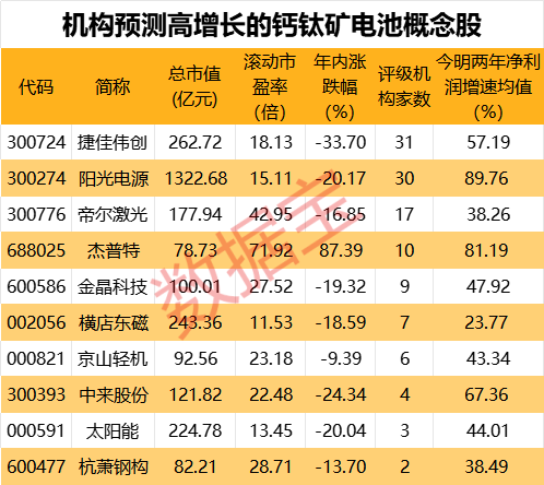 从未来增长潜力来看,按照2家及以上机构一致预测,今明两年净利润增速均有望超20%的有10只,包括阳光电源、捷佳伟创和横店东磁等。