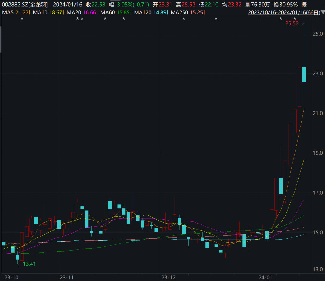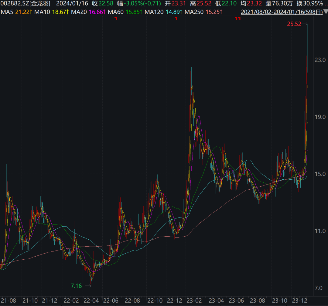 基金君也发现,自2021年8月以来,金龙羽的股价出现了大幅波动,并且在今年1月份创出了历史新高。