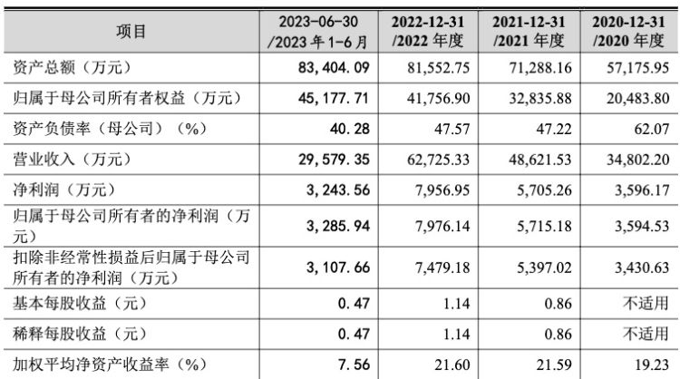 业绩方面,华庄科技近年总体保持增长,但自2023年起出现下滑风险。2020年度、2021年度、2022年度和2023年1-6月(以下称“报告期内”),华庄科技实现营业收入分别为3.48亿元、4.86亿元、6.27亿元和2.96亿元,最近三年年均复合增长率为34.25%;净利润分别为3596.17万元、5705.26万元、7956.95万元、3243.56万元。