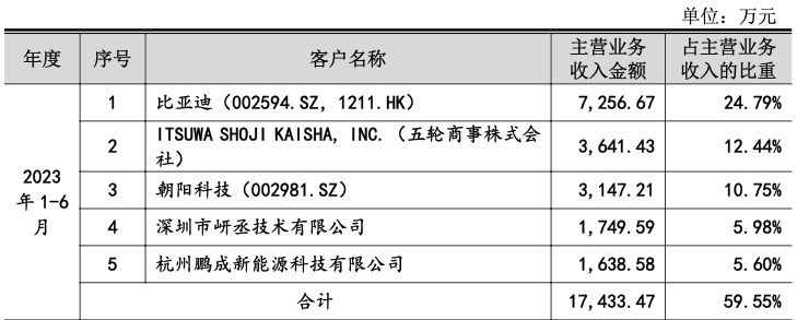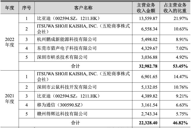 ▎第一大客户比亚迪贡献超两成收入,主要客户流失存隐忧