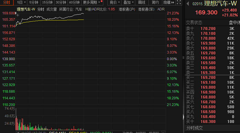 今日早盘,港股理想汽车同样大幅上涨,午间收盘涨超21%。