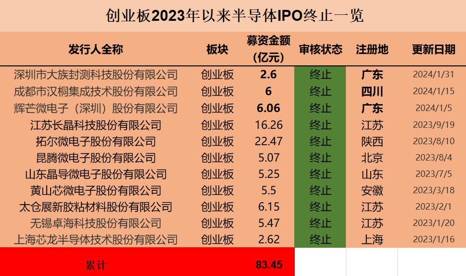 半导体IPO风向变了:26单终止 多家“卡壳”问询阶段