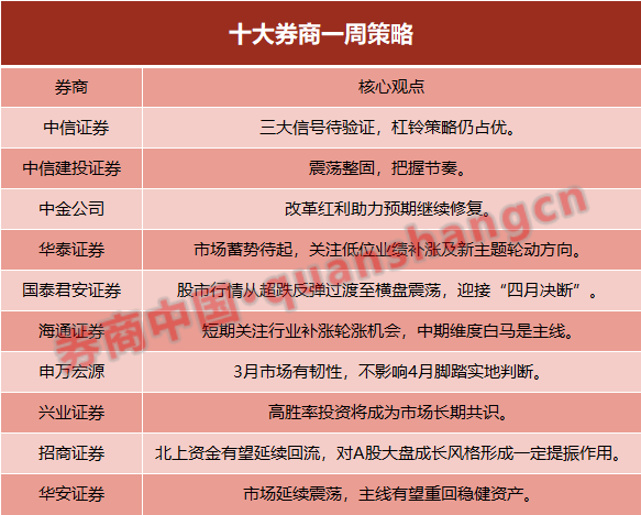 十大券商策略:震荡整固!3月市场有韧性 关注低位业绩补涨及新主题轮动方向