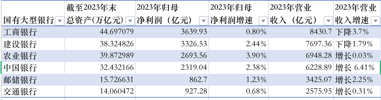 国有六大行2023年的净利润增速均大幅低于上一年。