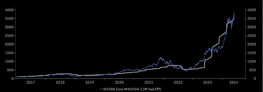其实,回顾英伟达股价的这一轮暴力上涨,是具备业绩支撑的。