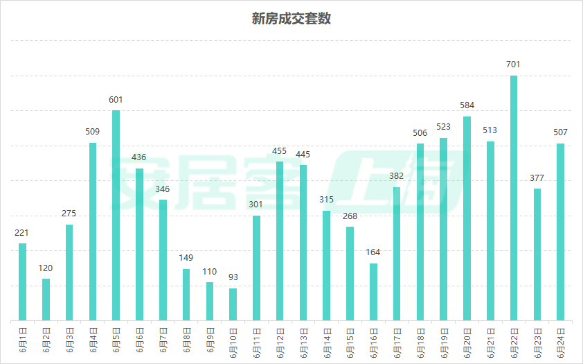 整体来看,网上房地产数据显示,6月截至6月25日,上海新房(含商业)累计网签8901套。