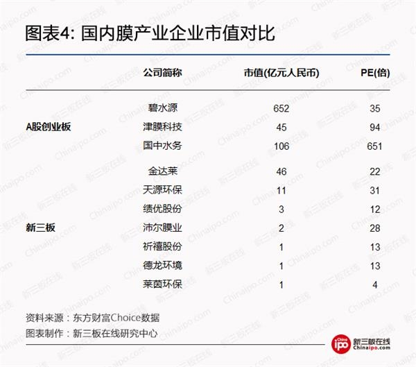 从市盈率的角度来看,新三板膜水处理企业估值平均较低。