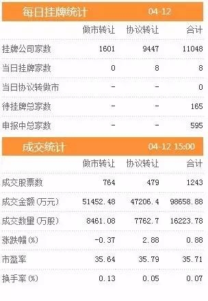 今日新增挂牌企业8家,截至2017年4月12日,挂牌企业总数达到11048家。