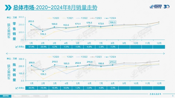 昨日(9月9日),中国汽车流通协会乘用车市场信息联席分会发布数据,8月,国内狭义乘用车零售190.5万辆,环比增长10.8%;在去年同期的高基数基础上,同比微降1.0%。前8月累计销量依旧维持正增长势头,同比增长1.9%,共售出1347.2万辆。