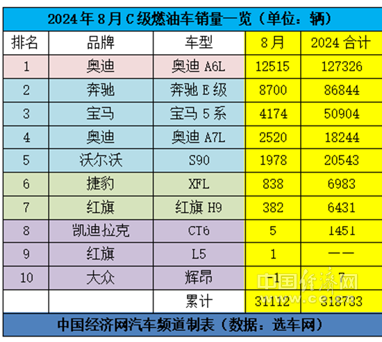 受数据源更新的影响,中国经济网记者无法算出国产C级车在今年前8月的累计销量数据。为此,记者主要以8月单月数据为基础,分析该细分市场的现状。