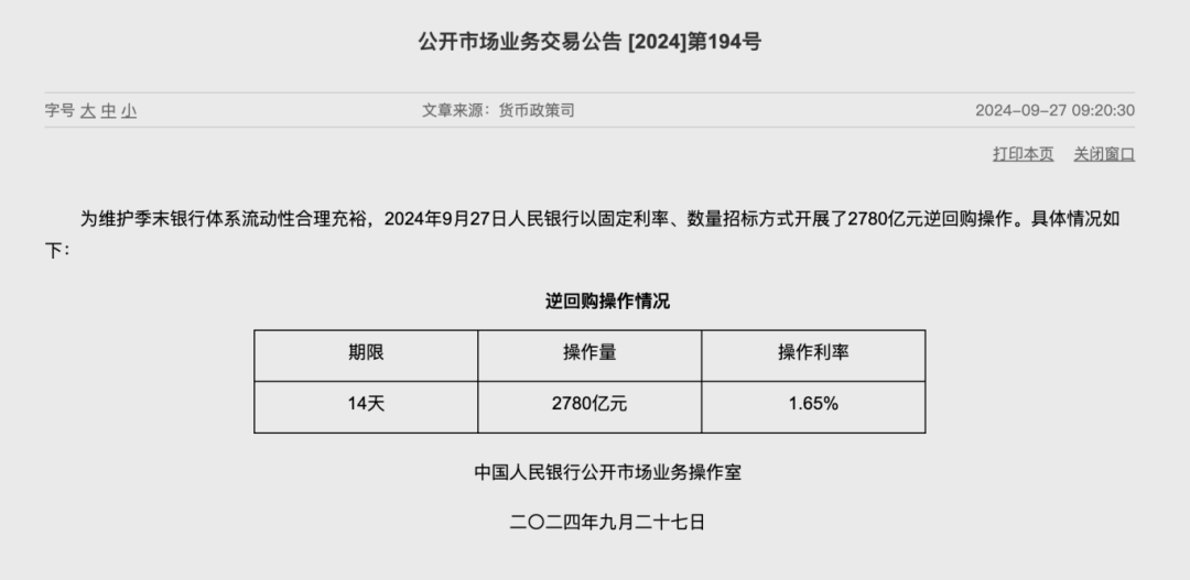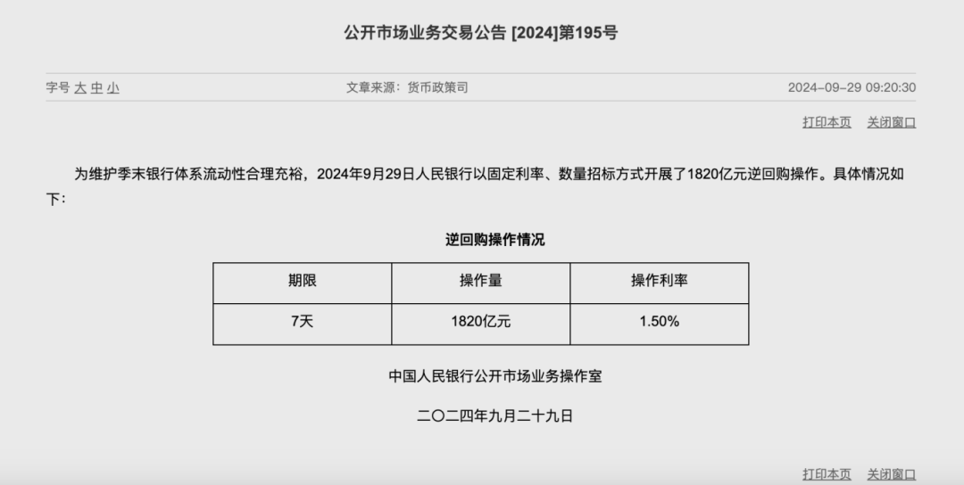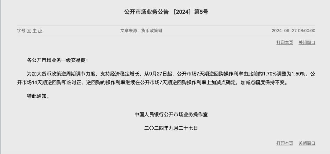 降息今日“落地”!7天期逆回购中标利率从1.7%降至1.5%