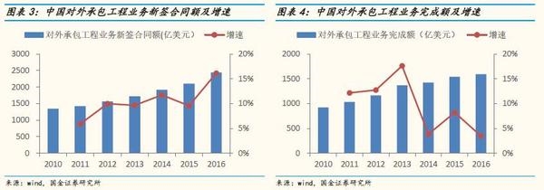 二、“一带一路”战略持续推进,海外新签合同额持续上升,海外工程业绩持续攀升。