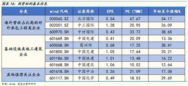 我们建议从三条主线把握投资机会:1)海外营收占比高的对外工程承包类企业;2)高铁、路桥、水利工程等基础设施类施工建筑企业;3)其他值得关注企业。