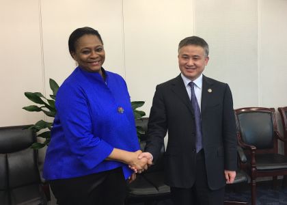 4月15日上午,中国人民银行副行长、国家外汇管理局局长潘功胜在北京会见了世界银行副行长阿鲁玛·奥茨(Arunma Oteh)一行。双方就当前国际经济金融形势以及世界银行发行SDR债券、绿色债券和熊猫债券等相关问题进行了沟通交流。