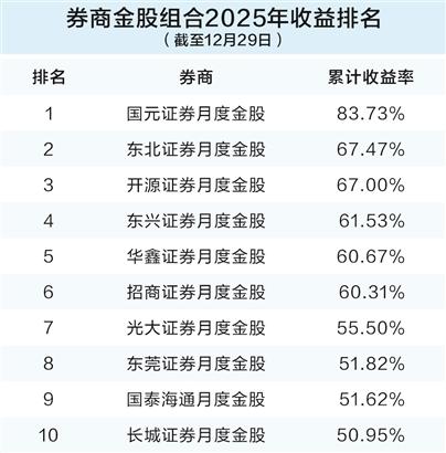 数据显示,截至12月29日,今年有10家券商的金股组合取得了超过50%的亮眼收益。提早在低位挖掘相关个股并持续向市场推荐,是不少券商斩获超额战绩的秘诀。比如,某券商自低位起连续4个月推荐新易盛,完整地吃到了该股超4倍的涨幅。