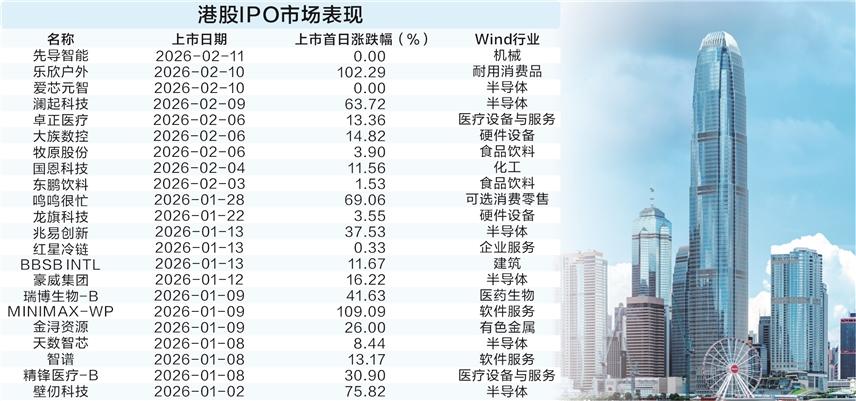 2月11日,智能装备企业先导智能登陆港股。上市首日,公司股价开盘上涨1%,尽管尾盘期间股价一度下探至发行价以下,但随后快速拉升,最终守住发行价,收盘未出现破发。先导智能的表现是近期新股市场的一个写照。Wind数据显示,今年以来已有22只新股在港股上市,且这些新股在上市首日无一破发。与之形成鲜明对比的是,在2025年12月,25只新股上市首日竟有10只出现破发。