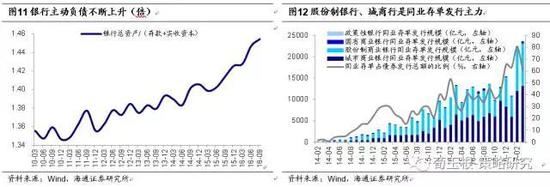 金融部门中中小型银行过去几年规模急速扩张。过去几年存贷息差的逐渐缩小使得银行不得不做大规模,通过“薄利多销”获取更多利润。2013年至2016年,银行总资产由2013年140万亿元扩张至2016年三季度206万亿元,总资产同比增速从2013年的14.4%增至2016年三季度15.8%。其中中小银行扩张速度更快,13年以来资产规模增速基本在20%以上,远高于大型银行的10%左右,在银行总资产中占比也从13年的40%增至去年三季度的近50%。不仅如此银行表外资产也在迅速扩张,银行理财规模余额从2013年10万亿增长至2016 年末的29万亿。银行资产端的扩张必然要求负债端的增长。问题是银行负债中最大一块的存款是被动负债,其规模变化很难受银行自身控制,这就使得银行转而扩张主动负债,我们用银行总资产/(存款+实收资本)来估算银行主动负债的变化,可以看出这一比例从2013年1.39升至2016年1.45,而这其中同业存单因被当成应付债券来处理,并未纳入到银行同业负债的考核监管中,所以同业存单成为近年银行主动加杠杆的主要方式。同业存单发行规模从2013 年340亿元至2016年底14万亿元。从结构看,股份制银行和城商行由于网点限制,吸收存款能力有限,为实现资产负债表扩张,发行余额占同业存单总发行额接近90%,是同业存单的主要发行者。