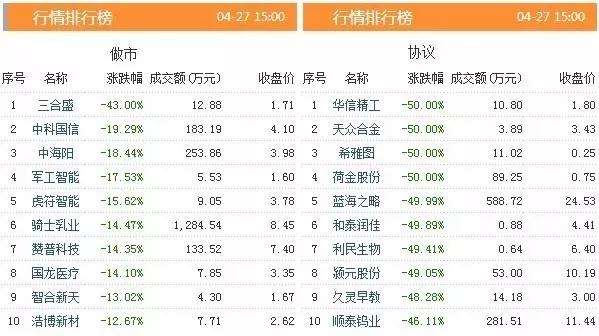 【跌幅榜单】
