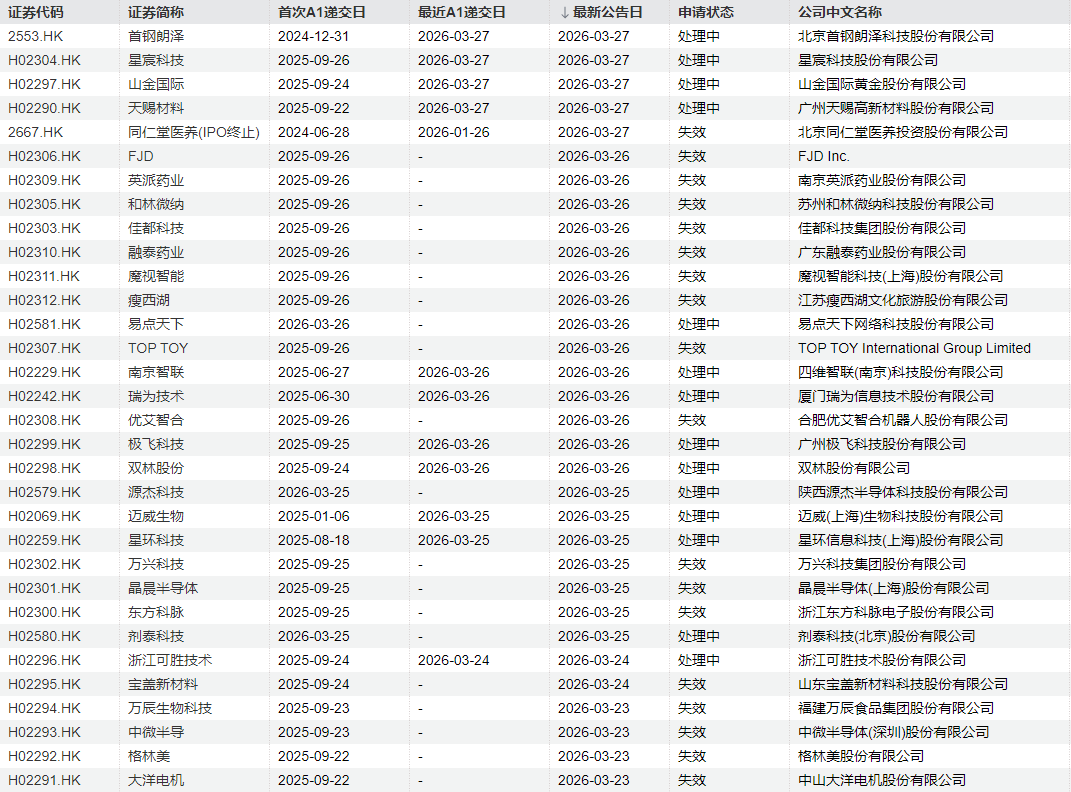 北京首钢朗泽科技股份有限公司、星宸科技股份有限公司、山金国际黄金股份有限公司等更新了港股招股书。